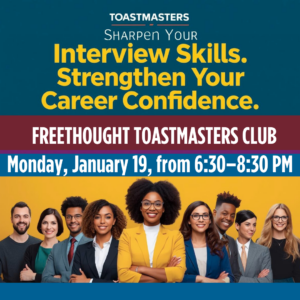 Whether you’re actively job hunting, exploring your next move, or simply staying career-ready, the Freethought Toastmasters Interview Workshop is designed to give you a real edge.